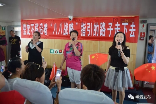 大宣讲重向网络发力。市妇联组织宣讲团充分利用新媒体方式在微信群中上党课。岱山县高亭镇妇联主席於燕芬在岱山县先锋联盟中心带领社区妇联主席认真学习《读懂“八八战略”》小册子,畅谈学习感悟,真正做到学懂弄通,领会精髓要义。大宣讲重在创新。在嘈杂的码头候船厅、全速前进的船舱内,宣讲员们突然出现,她们以歌舞快闪的形式吸引了众多市民和游客的目光。大宣讲重在结合。舟山市妇联结合当前舟山市创建全国文明城市工作开展大宣讲,动员全体妇联干部一起行动起来,争当创城的巾帼先锋。最美家庭代表现身说法,“行进新区·最美家庭故事分享会”感动新区千万家;八一期间军嫂梁宝迪宣讲自家好家风,舟山首个社会组织妇联美之声演唱团把家庭快乐成长的理念传达到新区群众心里。
